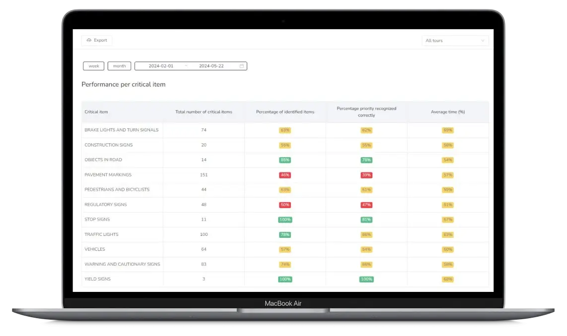 We created User Analytics for Drive Focus with rehabilitation settings, driving schools, and research institutes in mind. User Analytics provides detail scoring information to target instruction or intervention.